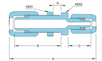 | NO. | Tube O.D. | Tube O.D. | Orifice | A | B | C | D(Max) | Hex1 | Hex2 | MinimuPanel HoleDiameter  |